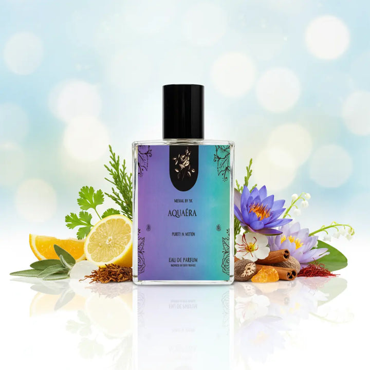 - Middle notes: Nutmeg, blue lotus, water lily, saffron, bourbon geranium, Ceylon cinnamon, and lily-of-the-valley. These notes provide a spicy, warm, and floral contrast to the citrus top.