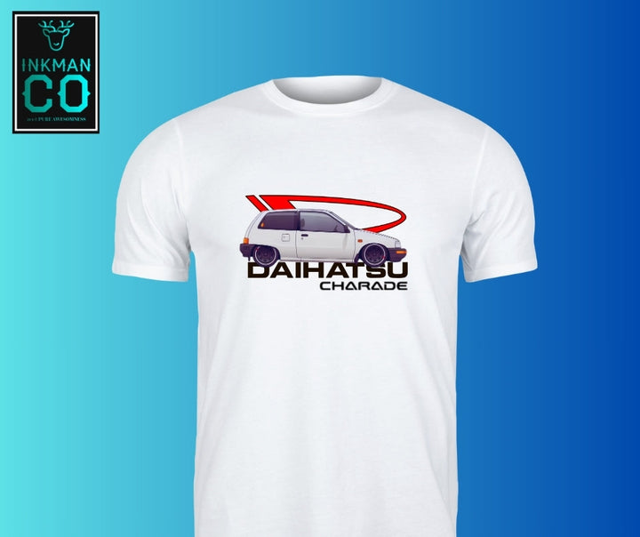 Bring back hatchback nostalgia with this clean Daihatsu Charade graphic tee. Featuring a side-profile of the iconic Charade G100 with deep-dish wheels and a bold red “D” emblem, this shirt is built for fans of retro Japanese compact cars and low-key street builds.